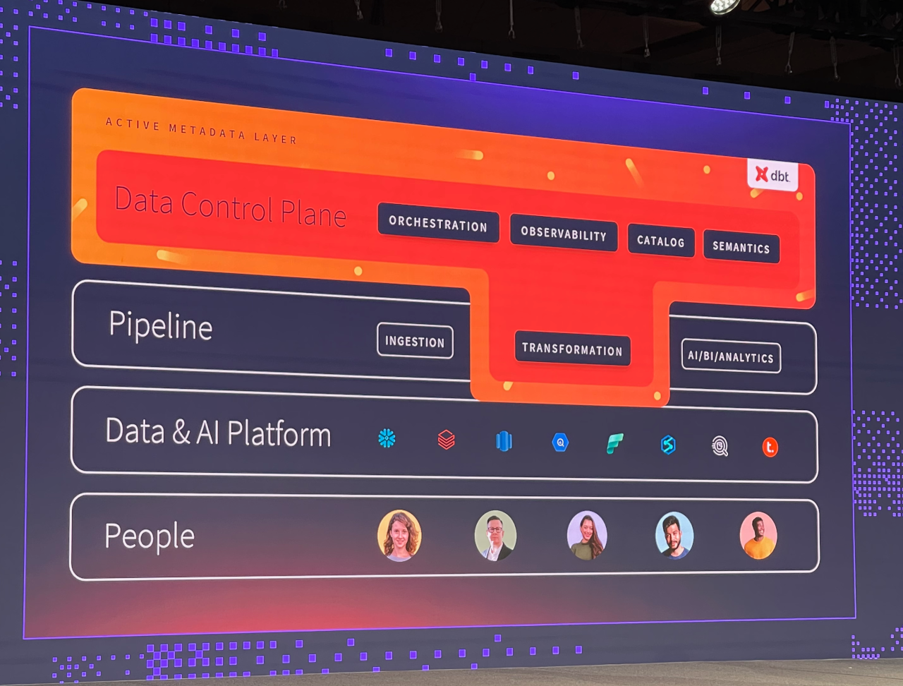He talked about the origins of dbt Labs, which began life as Fishtown Analytics (Fishtown is a section of Philadelphia, PA, USA, where the company was founded) with its mission to create a mature workflow system for analytics. This has now grown into something they are calling the “data control plane”: