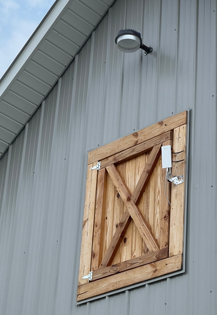 I mounted the Client unit on the side of the barn window, and ran the Ethernet cable down through the ceiling into the tack room.