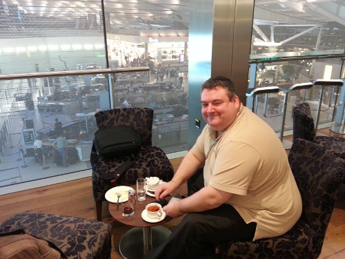 The next morning we took a cab to Terminal 5 at Heathrow. Since he no longer has elite status I was able to get him into the BA lounge, and he was able to show me a really cool, almost hidden section of the lounge where we waited for our gates to be announced. It was a fun visit and I hope to be able to see him again soon, which will probably be at the OpenNMS Users Conference in March – the OpenNMS event of the year.