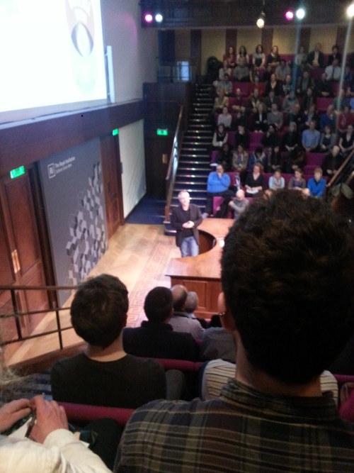 We got there a bit early, so I grabbed a local ale and we waited for Craig Gallen (OGP) to show up from the Royal Society (a different “Royal”). The auditorium was pretty full and steeply pitched, which reminded me of some of the many colleges I attended.