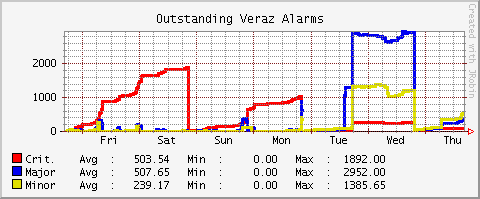 By configuring OpenNMS to receive those events as traps (see the Veraz.events.xml file) and then using automations to match the “ups” with the “downs”, the client can now tell at a glance the status of his large telecom infrastructure just by looking at the alarms list.